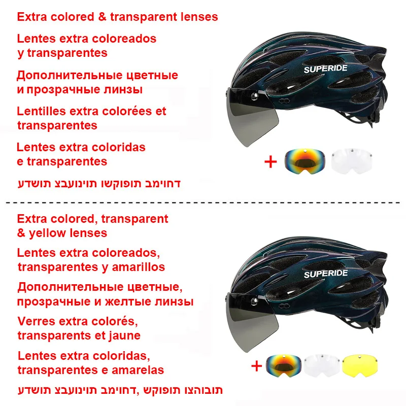 Ride in style and safety with the Ultralight Cycling Helmet with Magnetic Goggles and Sun Visor. Designed for both men and women, it features a durable in-mold construction for superior impact protection. The magnetic goggles attach securely for eye protection against wind, dust, and sunlight. The integrated sun visor shields your eyes while reducing glare on bright days. Lightweight and aerodynamic, it minimizes fatigue during long rides. Multiple ventilation holes ensure excellent airflow to keep your head cool and comfortable. Adjustable straps and a dial-fit system provide a secure, customized fit. Ideal for road cycling, mountain biking, and outdoor sports. Removable padding makes cleaning simple and maintains comfort. Ride confidently with this versatile, stylish, and high-performance cycling helmet.
